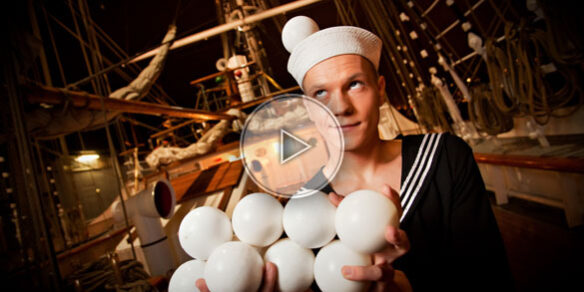 Originally from Ukraine, this juggler is presenting his act on the sailing theme.